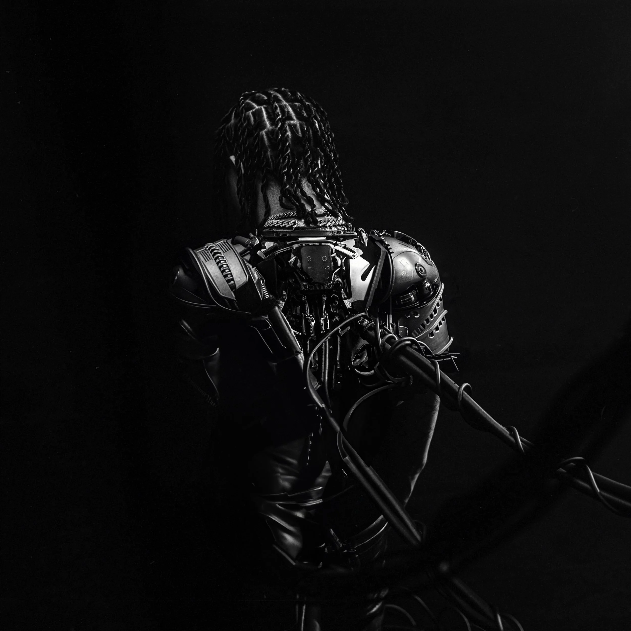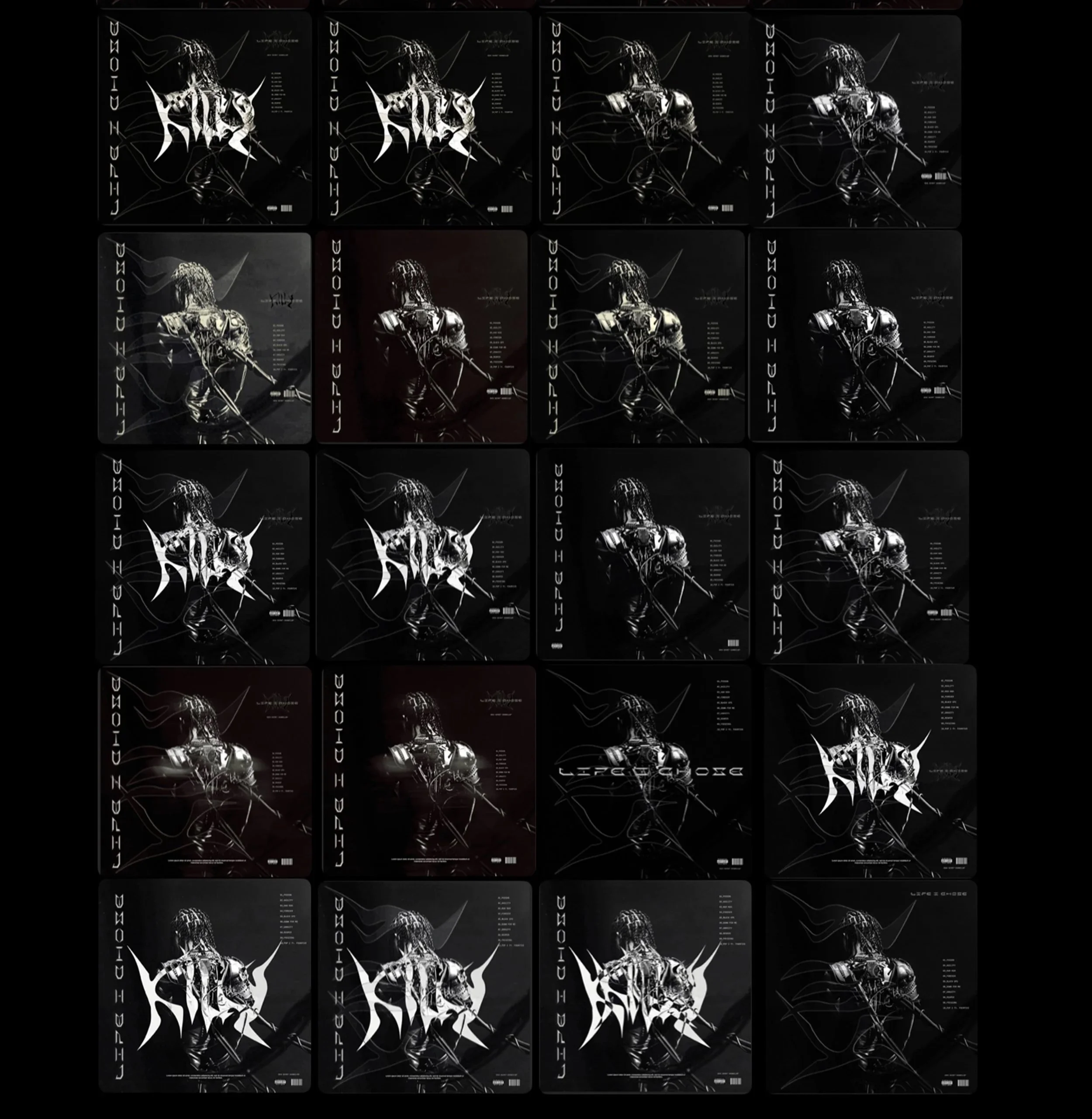For the album cover and tracklist, AI wasn’t just a tool, it was a creative puzzle. Killy envisioned body armor fused to his form, so rather than relying on simple AI prompts, I strategically generated and refined each section until they seamlessly connected.